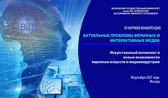 10 декабря 2021 в Москве в Высшей школе (факультете) телевидения Московского государственного университета имени М.В. Ломоносова пройдет IV научная конференция «Актуальные проблемы экранных и интерактивных медиа. Искусственный интеллект и новые возможности экранных искусств и медиаиндустрии».