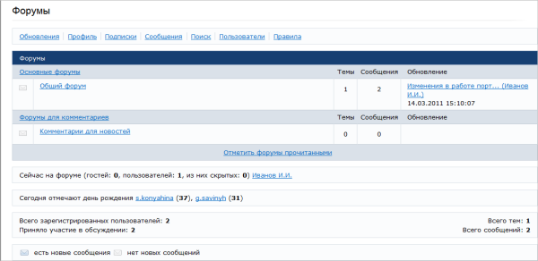 Используя форумы, вы можете попросить помощь в решении своей проблемы, дать совет, обсудить различные темы. Все доступные для сотрудников портала форумы (не считая личных и форумов групп) представлены на странице Форумы: